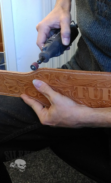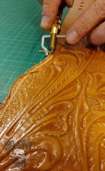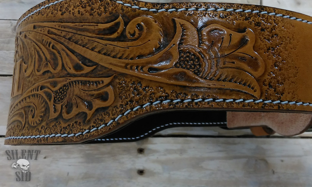 Sheridan design leather carving is a real 'Top Shelf' item. Nothing screams handcrafted like a Sheridan pattern on display. Non of these embossed, ready made things that find there way onto the market and get sold as 'authentic' design leather come anywhere near - these are nothing but VERY poor imitations of what take hours and hours (years and years) worth of practice and skill to be able to complete. Realy hand carved leather takes time and skill. Don't be tempted, people who know will see straight through the nasty, cheap copy stuff.